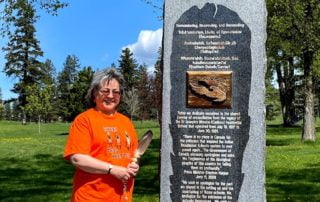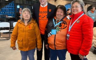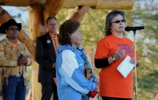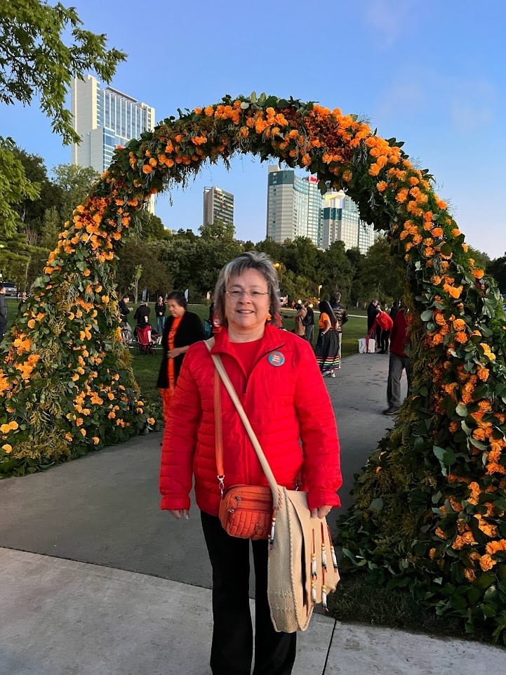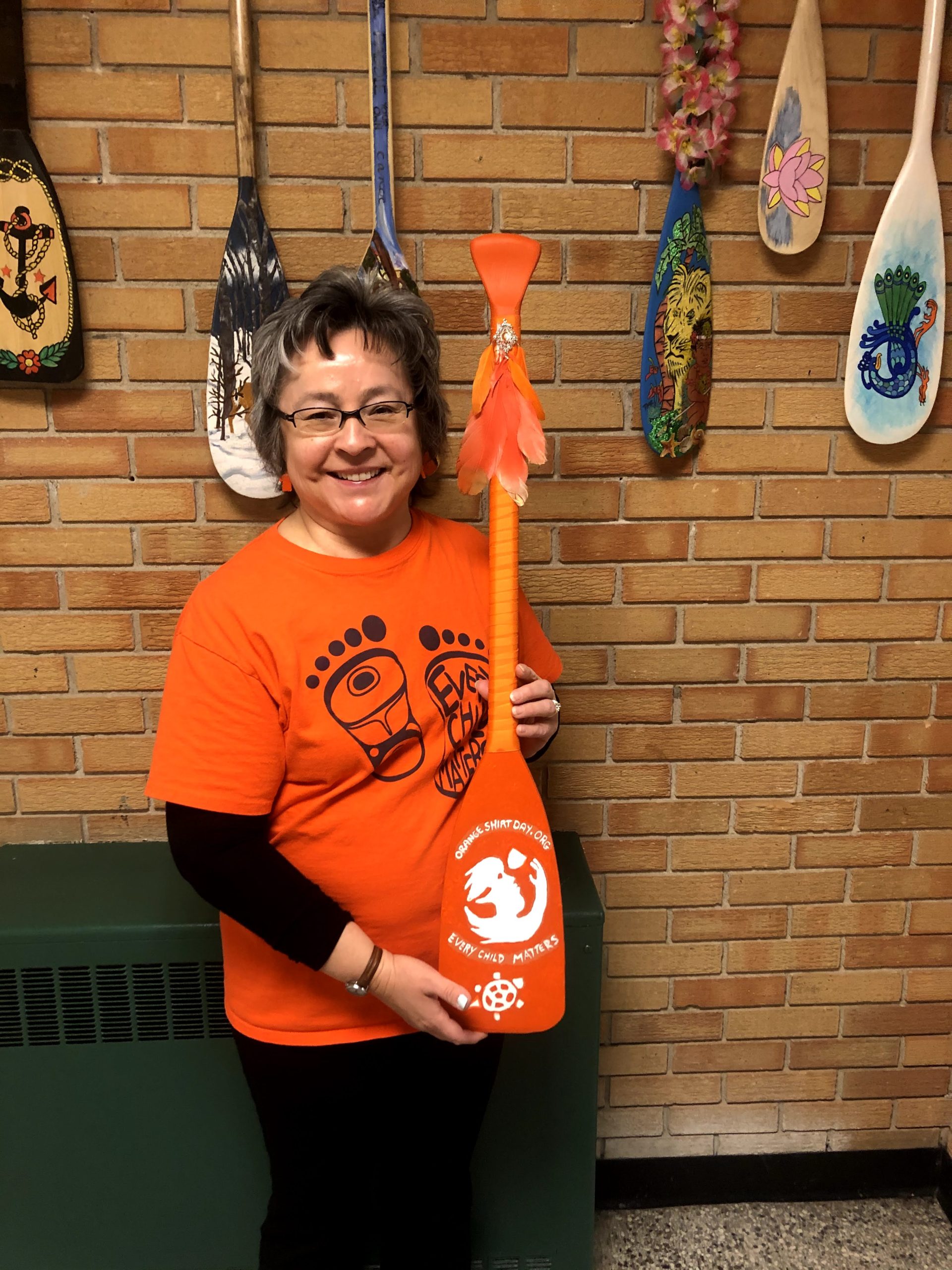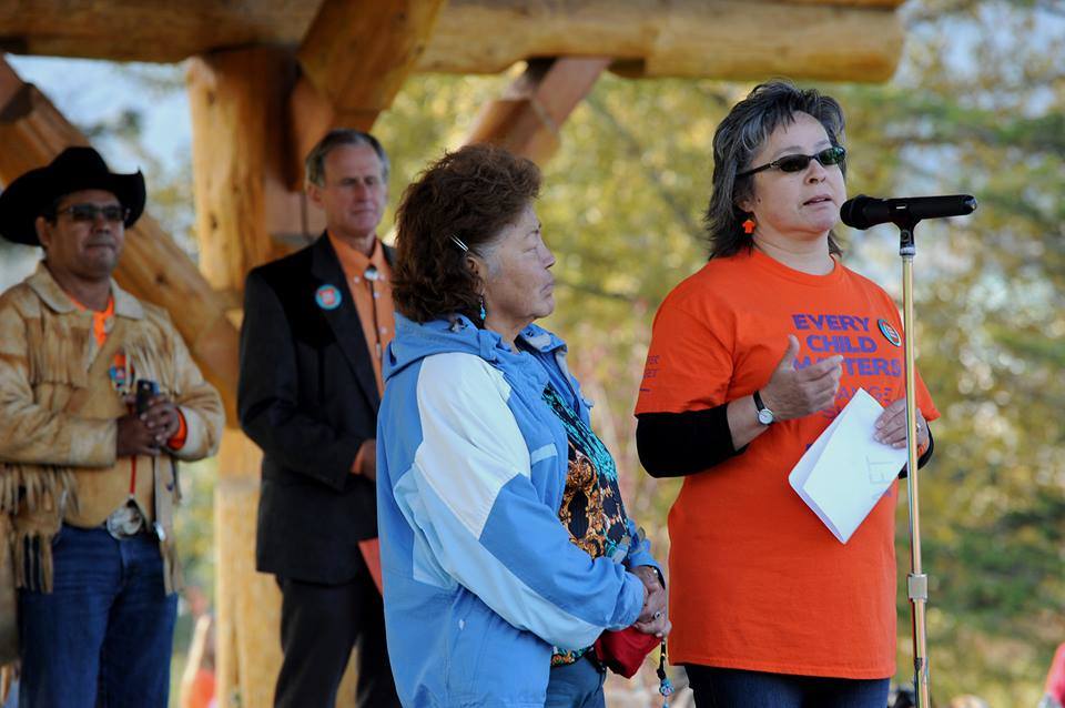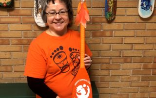 Phyllis Webstad is Northern Secwpemc (Shuswap) from the Stswecem’c Xgat’tem First Nation (Canoe Creek Indian Band). She comes from mixed Secwepemc and Irish/French heritage, was born in Dog Creek, and lives in Williams Lake, BC. Today, Phyllis is married, has one son, a stepson and five grandchildren. She is the Founder and Ambassador of the Orange Shirt Society, and tours the country telling her story and raising awareness about the impacts of the residential school system. She has now published two books, the “Orange Shirt Story” and “Phyllis’s Orange Shirt” for younger children.