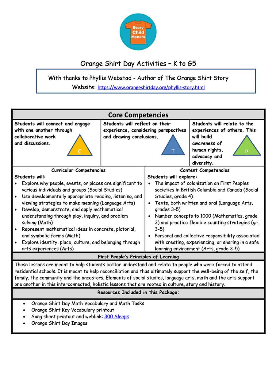 Orange Shirt Day K-Gr 6 Curriculum by Robin Drinkwater
